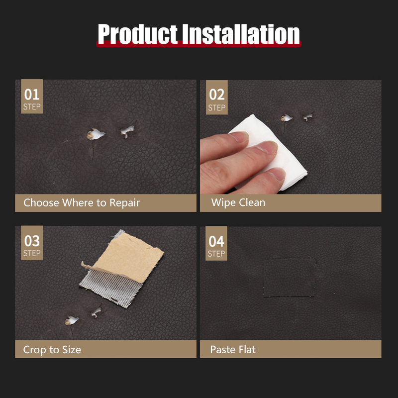 1.Professional Repair: Large-scale leather repair stickers are rich in colors, various textures, and a wide variety, including lychee grain, lamb grain, calf grain, and crazy horse leather texture, to provide you with the most comprehensive and professional leather repair products.